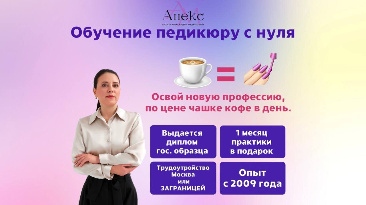 Я очень Довольна и Счастлива Учиться в именно Этой Школе Александры Медведевой на мастера маникюр и педикюра.. Во первых я теперь лично знаю и Наталью и Александру-Замечательные ,Умнички,Милые ,Добрые, Самые Лучшие Преподаватели по маникюру и педикюру)♡♡Обучение:Отличная, Доступная Теория, Практика тоже на высоте, ходи хоть каждый день на Практику-Супер классно что Практика Есть, но к сожалению у меня лично времени не особо было ходить часто на Практику ТЕПЕРЬ Я МАСТЕР -СПЕЦИАЛИСТ И ЕЩЁИ В ПОДОЛОГИИ ....Я БЛАГОДАРЮ ЭТУ ШКОЛУ ЗА ЗНАНИЯ И ПУТЬ В ЖИЗНИ, КОТОРУЮ ОНИ МНЕ ДАЛИ, РЕКОМЕНДУЮ ОТ ДУШИ !!!!СПАСИБООО ❤️ ОГРОМНОЕ АЛЕКСАНДРА И НАТАЛЬЯ-ВЫ ЛУЧШИЕ!!ПРОЦВЕТАНИЯ ВАМ И УСПЕХОВ!